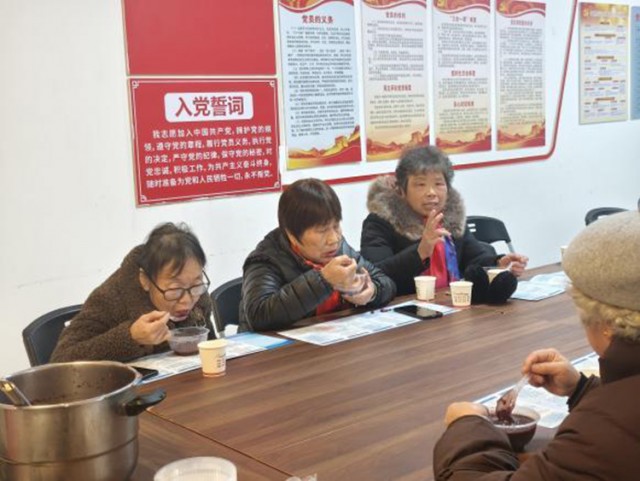 今年75岁的程奶奶高兴地说:“这粥熬得真地道!社区每年都想着我们,喝上一碗,心里头、身上都暖和了。”居民们围坐品尝,谈天说地,分享生活趣事,现场欢声笑语不断,邻里情谊在香甜的粥香里悄然升温。