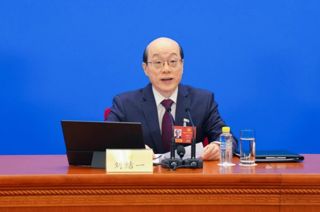 3月3日,全国政协十四届四次会议新闻发布会在北京人民大会堂举行。大会新闻发言人刘结一向中外媒体介绍本次大会有关情况并回答记者提问。曹祎铭 摄