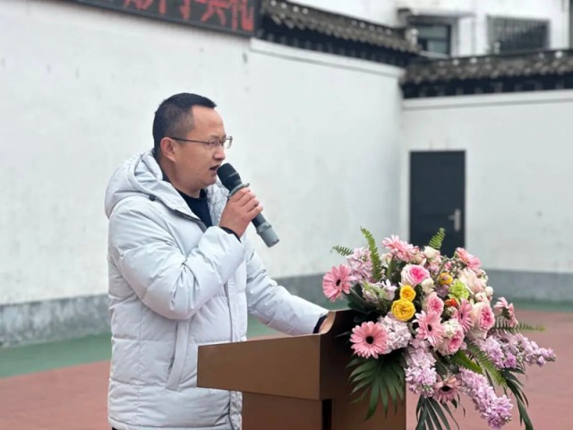 学校党总支书记汪海蛟在开学典礼上做了总结讲话。他号召全体师生以拼搏精神投入到新学期学习生活中。