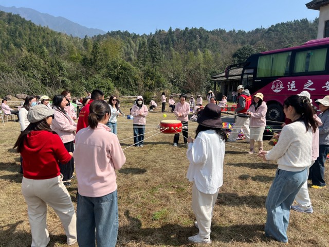 活动中,大家在专业教练的带领下,参与了“桃花开几朵”“同心鼓”等团队游戏活动,现场欢声笑语不断,既放松了身心,又增强了团队凝聚力。