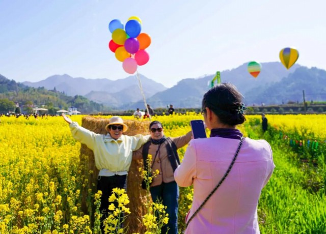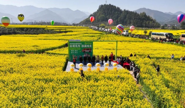 春满赣东北,花海迎客来。3月14日,“秘境花海・醉美昄大”赏民俗促消费活动在昄大乡盛大启幕。近万亩油菜花田铺就金色画卷,建文遗风与现代气息交融,这场集赏花经济、村落文化、民俗体验于一体的乡村盛会,吸引了赣浙两地游客纷至沓来,让“三清山北门户”昄大乡从过境驿站变身春日必游目的地。