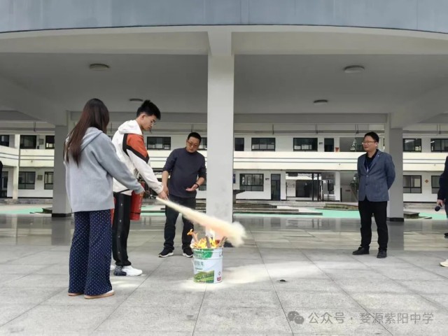 演练过程中,学校安保科科长毕灶坤为师生们讲解了火灾逃生的基本常识,还现场演示了灭火器的正确使用方法。同学们在指导下,亲自体验了灭火器的操作,进一步增强了实际操作能力。