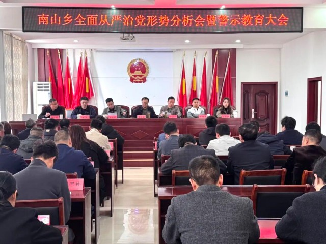 为进一步强化思想政治引领,严明纪律规矩意识,压紧压实管党治党政治责任,推动全面从严治党向基层延伸、向纵深发展,3月16日,玉山县南山乡召开全面从严治党形势分析会暨警示教育大会。会议由乡党委副书记、乡长刘李栋石主持,乡党政班子成员、各村“两委”干部、各站所负责人及全体机关干部职工参加会议。