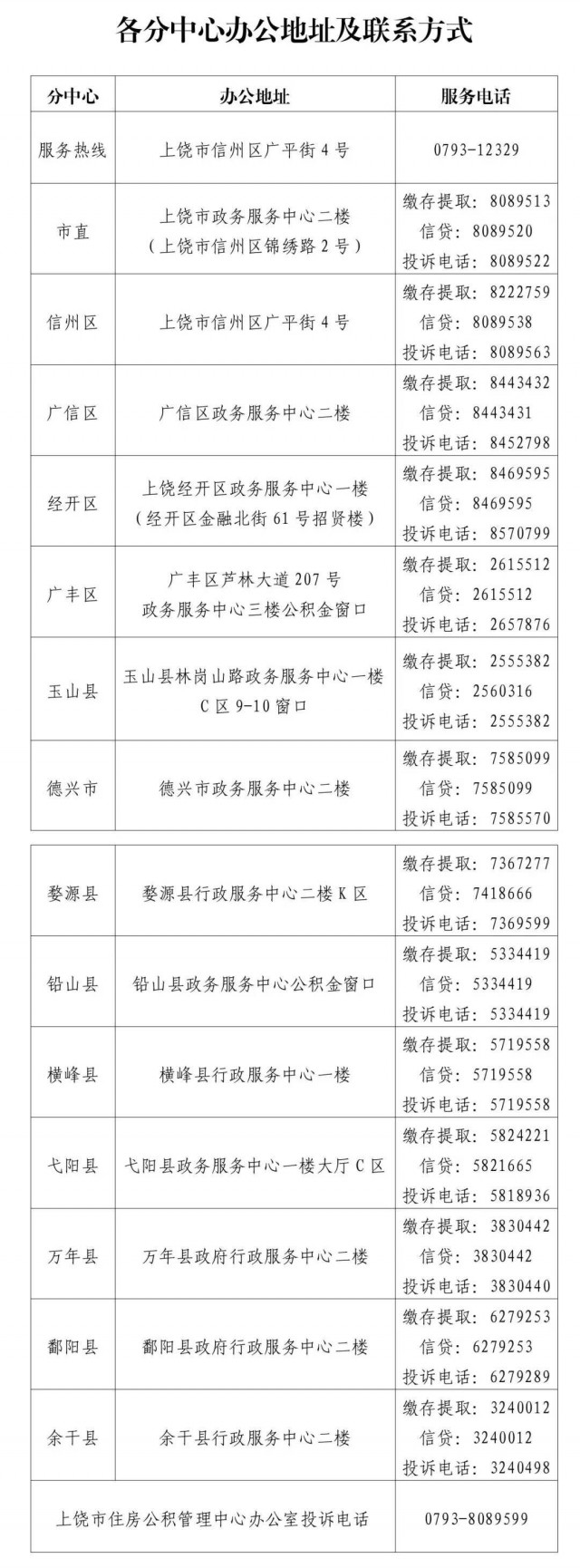 (二)各缴存单位和缴存职工在办理过程中遇到有关问题,可咨询各分中心(具体地址及电话见附件2)或者拨打客服热线0793-12329。