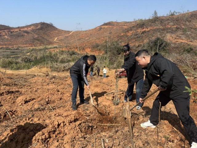 上午,党员们前往裴梅镇生态基地植树,大家分工协作,种下70余棵树苗,形成“党员先锋林”,棵棵树上悬挂的“践行两山理论”“止损提质从我做起”等寄语牌彰显助力绿色发展的决心,党员们纷纷表示,种树既添生态绿,更种下责任担当。