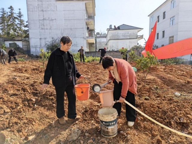 此时此刻,种下的不仅仅是一棵棵树苗,更是大家对家园共同的期许和美好的憧憬。经过一番热火朝天的劳作,一株株新栽的树苗迎风挺立,错落有致,仿佛在向人们诉说着泉塘村干群同心、共建美好家园的坚定决心。它们如同一个个绿色的卫士,守护着这片土地,也见证着党群之间深厚的情谊。