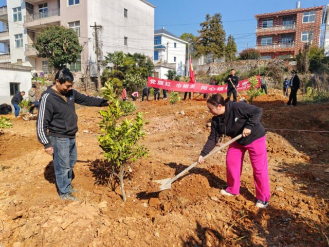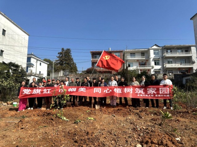党旗红,红得热烈而奔放,它象征着党员干部的初心和使命,激励着大家不断前行;巾帼美,美得动人且温暖,它展现了新时代女性的风采和担当,为乡村发展注入了新的活力。同心植树,筑起的是一道道绿色屏障,更是党群之间一座坚不可摧的连心桥。