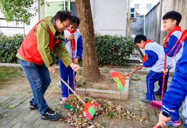 在养老院工作人员的悉心指导下,党员教师与少先队员们化身志愿者,个个精神饱满、热情高涨。大家拿起劳动工具,分工协作、认真细致,有条不紊地清扫庭院。孩子们不怕脏、不怕累,弯腰清理角落杂物,不放过任何一处卫生死角,在亲身劳动中体会奉献的快乐,进一步增强了劳动意识与责任担当。党员教师们以身作则、率先垂范,与孩子们并肩劳动、耐心引导,用一言一行践行雷锋精神,充分彰显了共产党员的先锋模范作用。