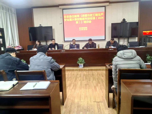近日,乐安县住建局在局三楼会议室组织召开《房屋市政工程生产安全重大事故隐患判定标准(2024版)》(以下简称《标准》)专题培训会,邀请全县建筑施工领域相关单位参加培训。