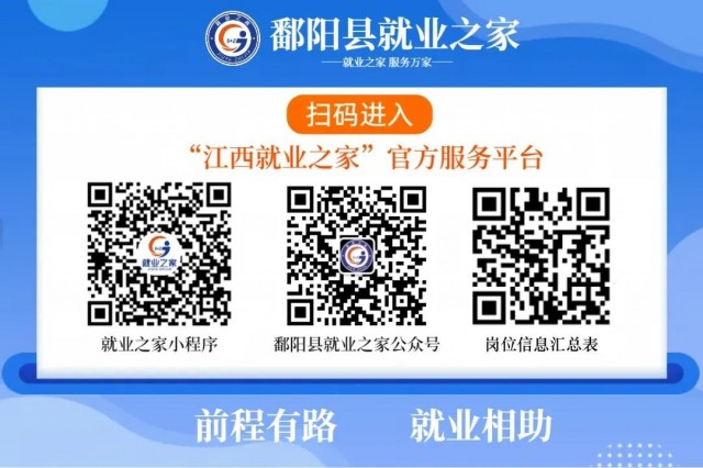 关注【鄱阳县就业之家】微信公众号,获取最新招聘资讯,助力职业发展!