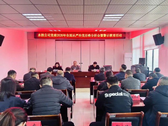 为深入贯彻落实全面从严治党要求,筑牢党员干部拒腐防变思想防线,为公司“十五五”开局起步提供坚强政治保障,3月21日上午,玉山县水务投资开发有限公司党委召开2026年全面从严治党形势分析会暨警示教育活动,公司党委副书记、总经理杨君主持会议,党委副书记纪慧萍传达了习近平总书记关于整治群众身边不正之风和腐败问题的有关重要论述和上级有关文件精神,公司全体党员、中层以上管理人员参加会议。