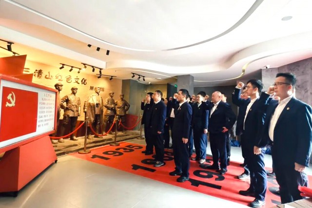 前往枫林八磜村奉献园开展沉浸式学习教育。大家认真聆听廉政故事,深切感受革命先辈清正廉洁、无私奉献的崇高品格,接受红色文化的深刻熏陶。面对鲜红的党旗,全体党员干部庄严举起右拳,重温入党誓词,铮铮誓言响彻现场,表达了不忘初心、牢记使命的坚定决心。(图文:玉山农商银行)