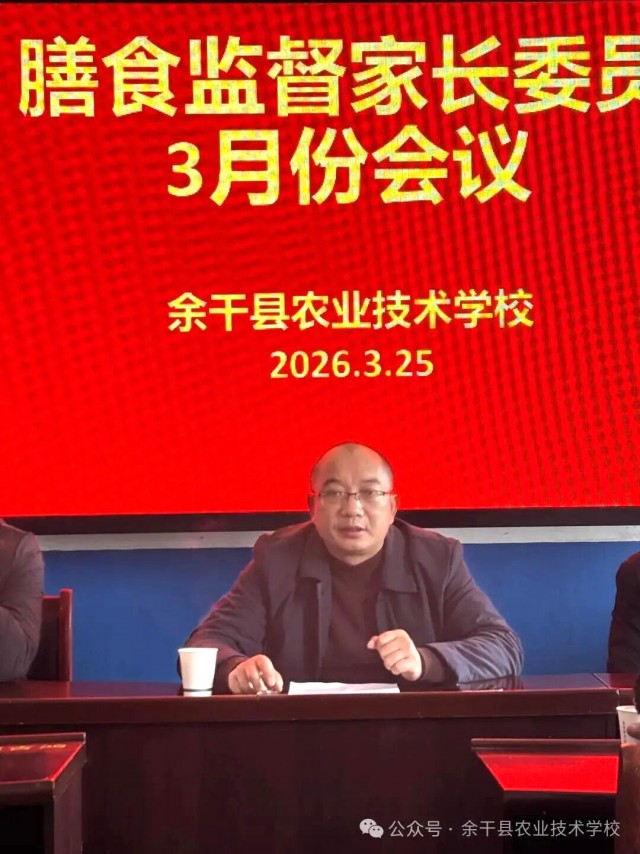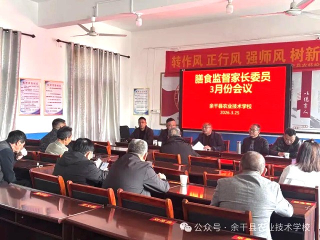 为切实筑牢校园食品安全防线,提升膳食服务质量,搭建家校协同共治桥梁,3月25日上午,余干县农业技术学校召开2026年春季学期3月份校园膳食监督家长委员会会议。学校党支部书记、校长高书建以及校级领导与膳食监督家长委员会成员们共同参会,共商膳食大计,共建安全、健康的校园餐饮环境。
