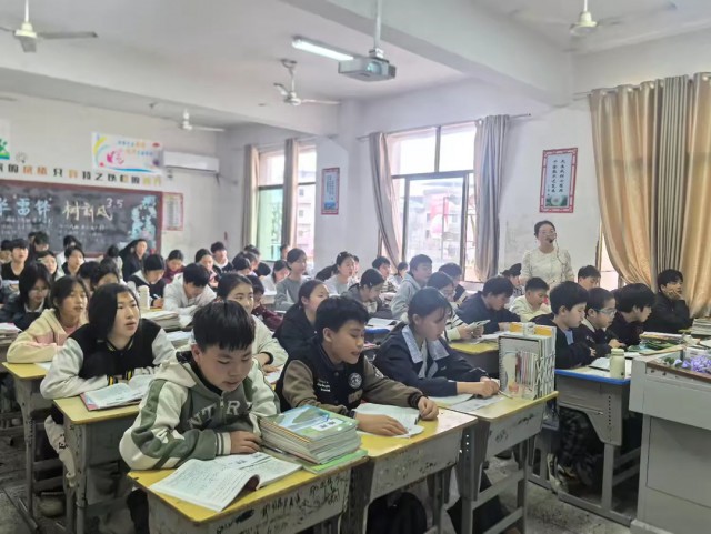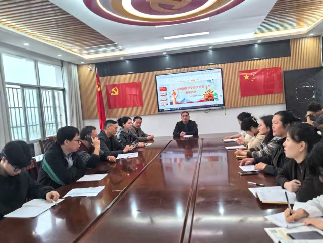 2026年3月30日下午,余干县古埠初级中学语文组开展主题教研活动,何晓萍老师带来《紫藤萝瀑布》公开课,全体语文教师参与此次教研。