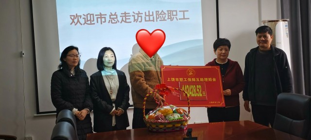 3月20日,上饶市总工会二级调研员余晓琴、市互保办主任王丹霞一行莅临玉山县,开展出险职工走访慰问活动,并将14.24万元职工互助保障理赔金精准送达。县总工会副主席杨慧芬陪同慰问。