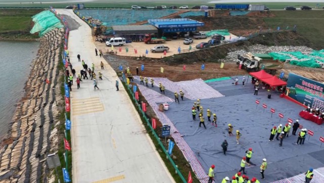 3月27日下午,鄱阳县组织举行鄱阳湖珠湖蓄滞洪区安全建设工程2026年度防洪度汛暨安全生产事故综合应急演练。来自县河道圩堤管护中心、鄱阳湖蓄滞洪区珠湖工程建设项目部、工程项目相关参建单位、水利专家及抢险突击队员共计130多人参加了演练。