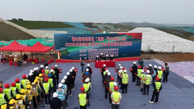 演练设定连续强降雨累计达80mm,鄱阳湖水位逼近警戒水位。存在漫顶、堤体裂缝渗漏的潜在风险。施工单位巡查人员见状,立即通过手机上报防汛指挥部请求支援,指挥部接到紧急报告后紧急协商,结合当前险情特点,决定立即启动“防洪度汛应急救援预案”,指示各职能小组迅速赶赴现场,并同步设置漫顶抢险、堤体裂缝、渗漏险情处置演练情景,全面检验应急处置能力。