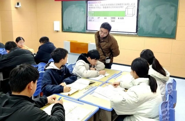 上午首先进行的是同课异构课堂展示。朱子中学胡辰璐与张建华两位老师围绕《立方根》一课进行展示。两位老师立足教材,结合学生认知特点,进行了各具特色的设计。胡辰璐以生活实例切入,引导学生从具体情境中感知、掌握立方根知识;张建华则紧扣概念,层层递进梳理立方根的运算方法,强化学生对知识点的理解与运用。两节课,两位老师都注重学生自主探究能力的培养,思路清晰,讲解透彻,互动灵活,充分展现了他们扎实的教学功底与独特的教学智慧,让听课教师深感同课异构的魅力,赢得了他们的一致好评。