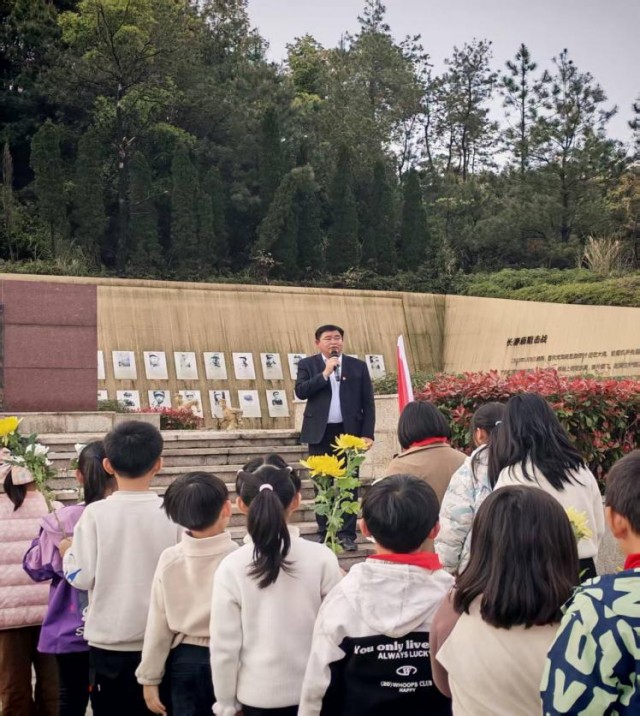 随后,校长王志勇发表致辞。他带领师生回顾了金溪战役中革命先烈浴血奋战的英雄壮举,深情讲述了先烈们为信仰挺身而出的感人故事,勉励同学们铭记历史、珍惜当下,以先烈为榜样,树立远大理想,努力学习本领,成长为担当民族复兴大任的时代新人。