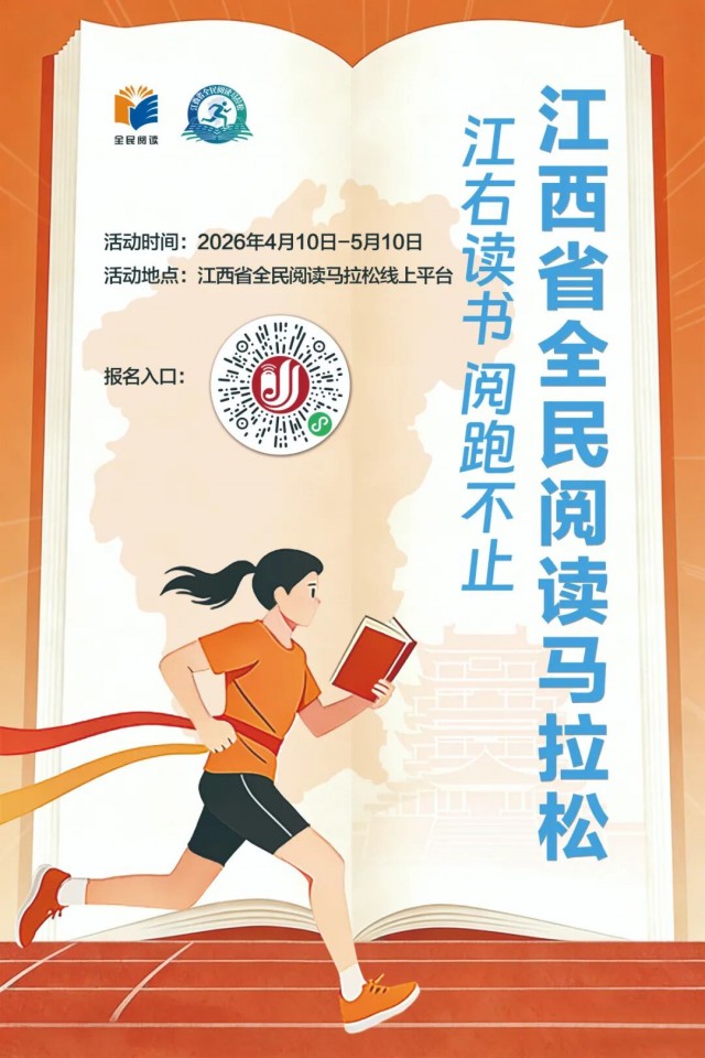 2026年是《全民阅读促进条例》实施元年,第五届全民阅读大会即将在江西南昌召开。作为大会“江右读书”系列活动之一,2026“江西省全民阅读马拉松”将于4月10日正式启动。
