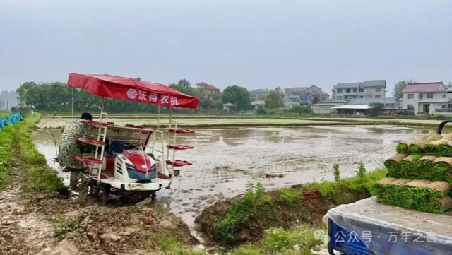 暮春时节,正是早稻插秧的关键农时,万年县上坊乡广袤田野间一派热火朝天的繁忙景象,处处涌动着春耕生产的蓬勃生机。种粮大户黄荣科抢抓晴好天气,组织农机手驾驶新款“农夫农机26款”插秧机穿梭于水田之中,机械匀速前行、秧苗整齐入土,一亩水田仅需20分钟就能完成插秧作业,大幅提升了春耕生产效率。