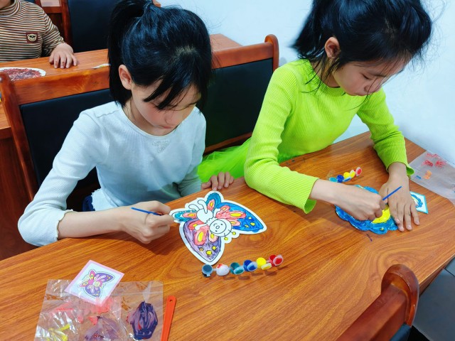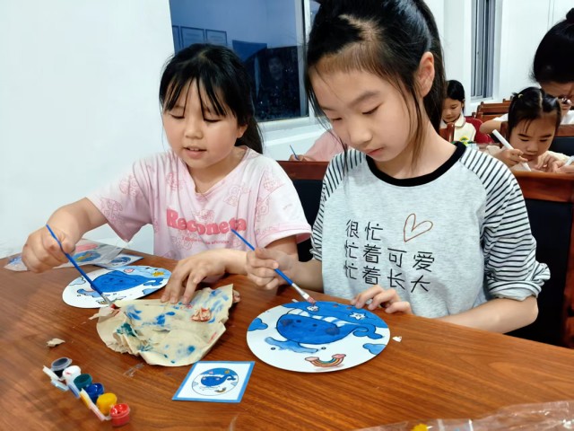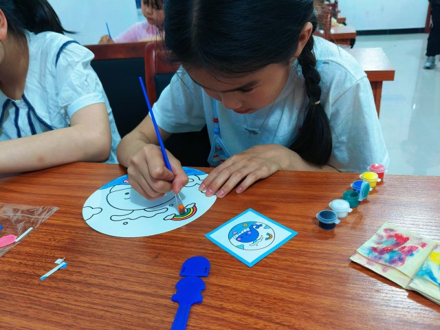 孩子们专注又认真,你画我看、互相分享,现场气氛轻松又欢乐。不一会儿,一把把普通的小扇子,就变成了一幅幅色彩鲜艳、创意满满的艺术作品。每一把扇子都独一无二,承载着孩子们纯真的童心。
