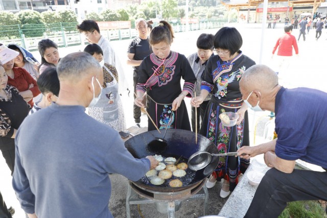 小溪畲族村党支部副书记兰启川在活动现场一边帮忙分发麻籽粿,一边表示:“未来我们将继续挖掘本地民族文化资源,举办更多民俗活动,让‘三月三’焕发新活力,助力乡村文化振兴。”